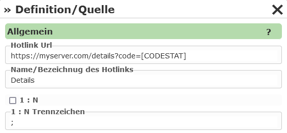 kann hier eine Hotlink-URL angegeben werden. In dieser URL können Felder aus dem